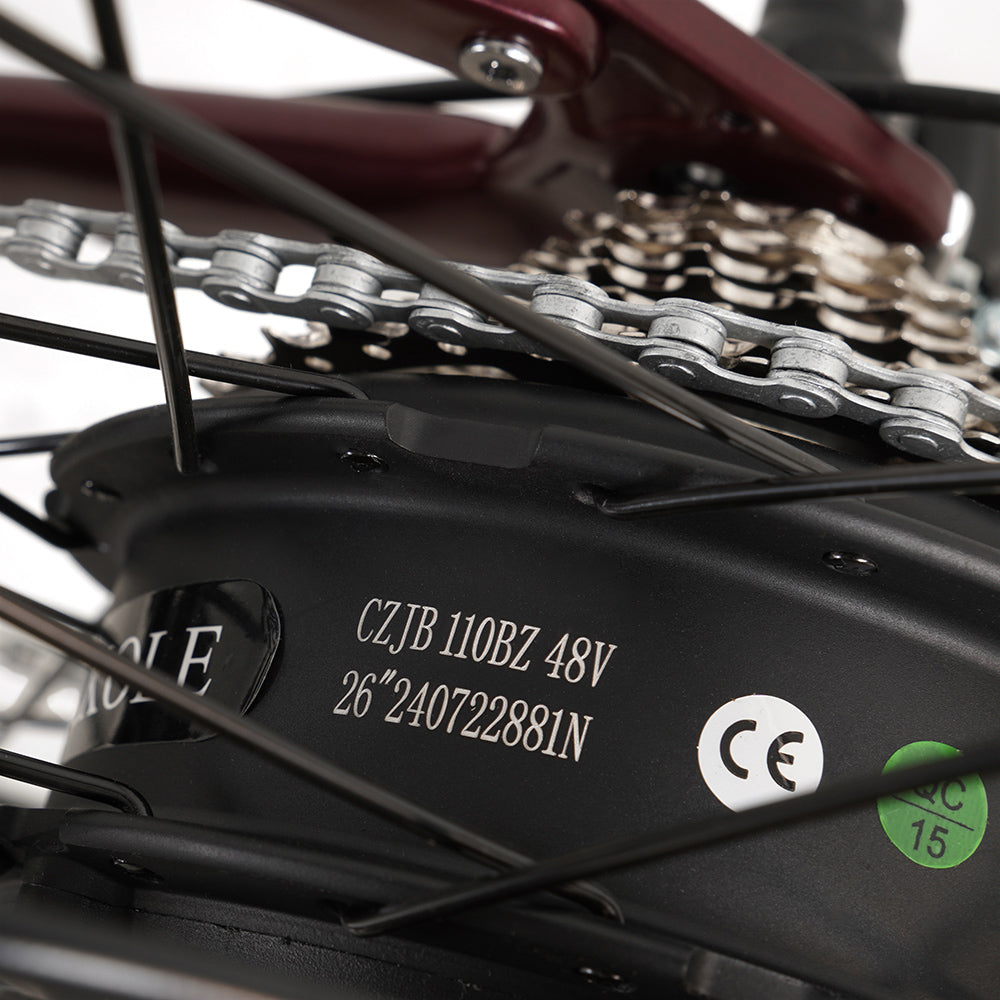 The 48V 250W (peak power 750W) brushless motor has low operating noise. Up to 60N.m torque can break a 30° climbing angle easily.